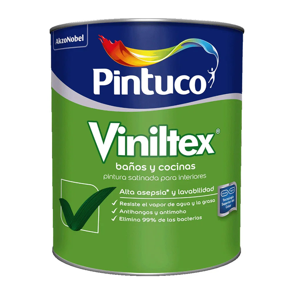 Pintura Viniltex Baños y Cocinas es una pintura premium 100% acrílica base agua, con Bacter Protec un antibacterial activo que elimina hasta el 99.9% de las bacterias, hongos y moho además cuenta con ultra lavabilidad en ambientes expuestos a manchas, vapor y grasa, cuidando la salud de todos en el hogar. No contiene plomo ni cromo. Cuenta con nuestro desarrollo tecnológico del color, ColorTech®.